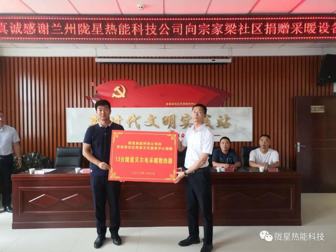 隴星熱能科技公司副總經(jīng)理、銷售公司總經(jīng)理劉靜,副總經(jīng)理、廠長(zhǎng)葉仲權(quán),辦公室主任張志遠(yuǎn),區(qū)域經(jīng)理漆全勝代表公司參加了此次愛心捐贈(zèng)活動(dòng)。劉靜在捐贈(zèng)儀式說:“隴星公司1998年成立,公司以生產(chǎn)采暖散熱器、太陽能集熱器為主,集科研、制造、營銷為一體。2015年隴星響應(yīng)甘肅省及蘭州市政府出城入園的號(hào)召,隴星工廠從高新區(qū)搬遷至蘭州新區(qū),并積極投身蘭州新區(qū)的建設(shè),創(chuàng)造了良好的經(jīng)濟(jì)效益和社會(huì)效益。同時(shí)隴星熱能科技公司牢記黨的宗旨,肩負(fù)社會(huì)責(zé)任,熱心公益事業(yè)。今天受隴星集團(tuán)領(lǐng)導(dǎo)及公司領(lǐng)導(dǎo)的委托,給宗家梁社區(qū)民俗文化中心捐贈(zèng)13臺(tái)電暖器,解決冬季采暖的問題,把隴星溫暖送進(jìn)宗家梁社區(qū)?!碧m州新區(qū)中川園區(qū)管委會(huì)黨委員管委會(huì)副主任曾凡彬在會(huì)上向隴星熱能科技公司表示感謝,對(duì)隴星公司的公益精神給予了高度認(rèn)可和贊賞。